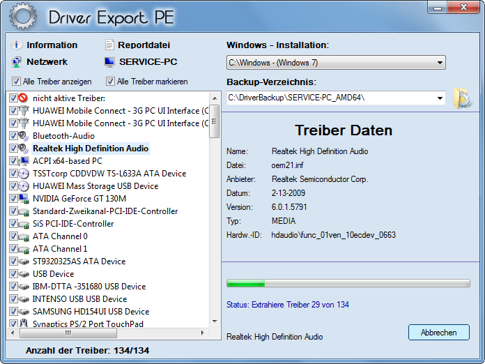 Das Programm arbeitet völlig systemunabhängig und extrahiert Ihre Treiber auch aus einem fremden Windowssystem (Offline-Zugriff).
