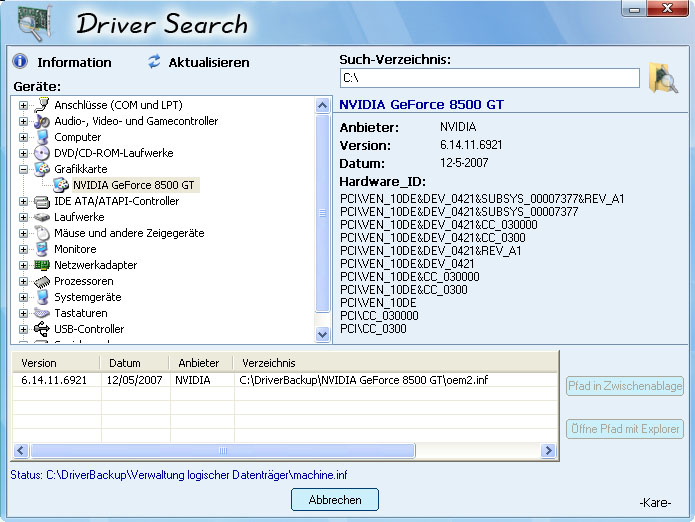 Driver Search bietet die Möglichkeit, Ihre eigenen Treibersicherungen aber auch andere Treiberpakete nach